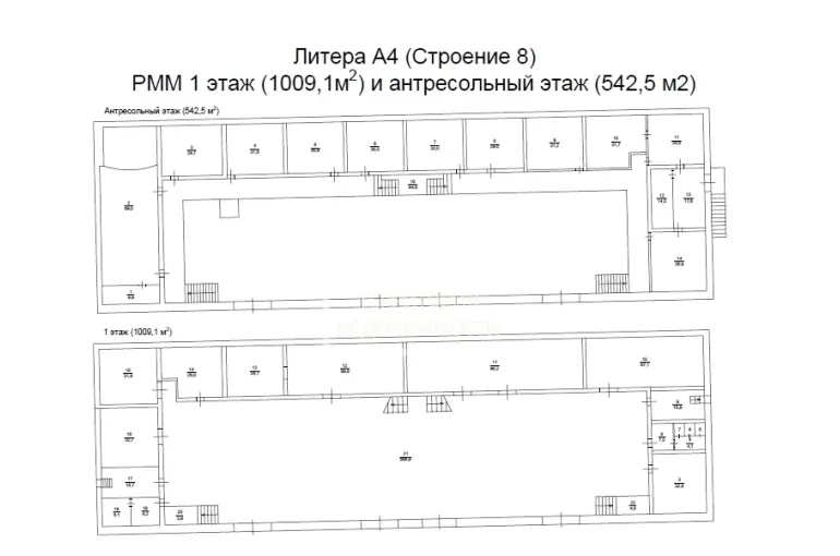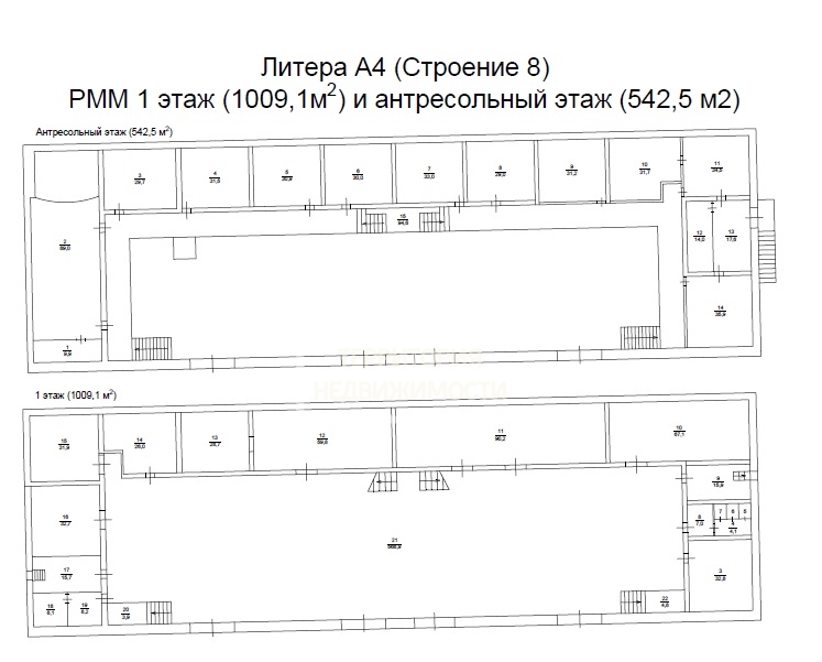 Сдаваемая площадь ремонтного цеха и производственно-складских помещений: 1009,1мм2, бонусом помещения в антресольном этаже 542,5м2