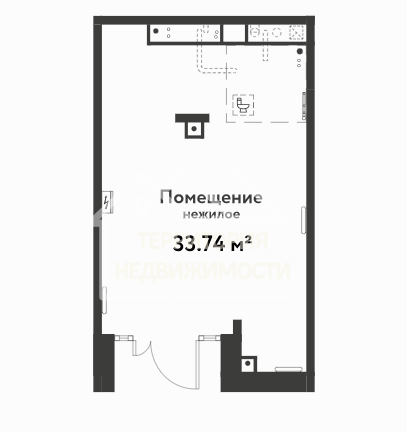 - площадь помещения 33.74 кв.м.