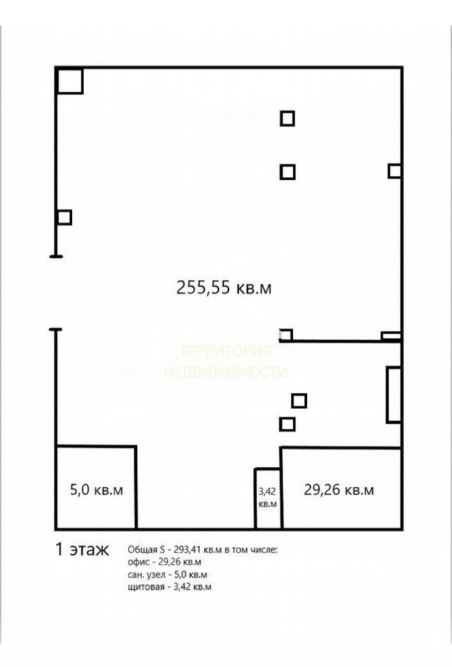 - Помещение состоит из торгового зала, склада и офиса